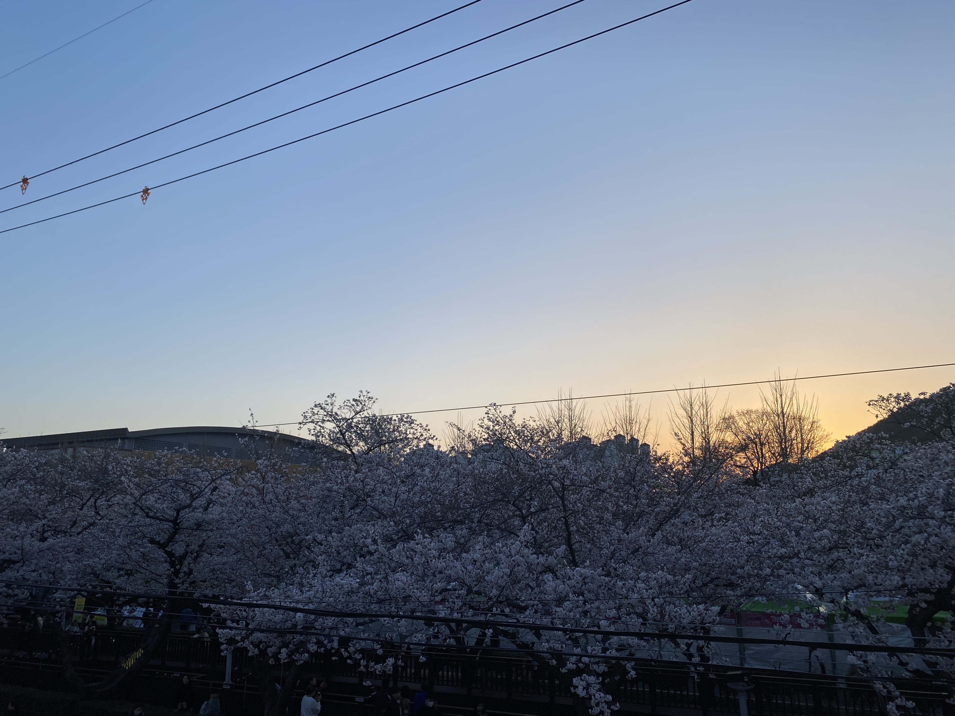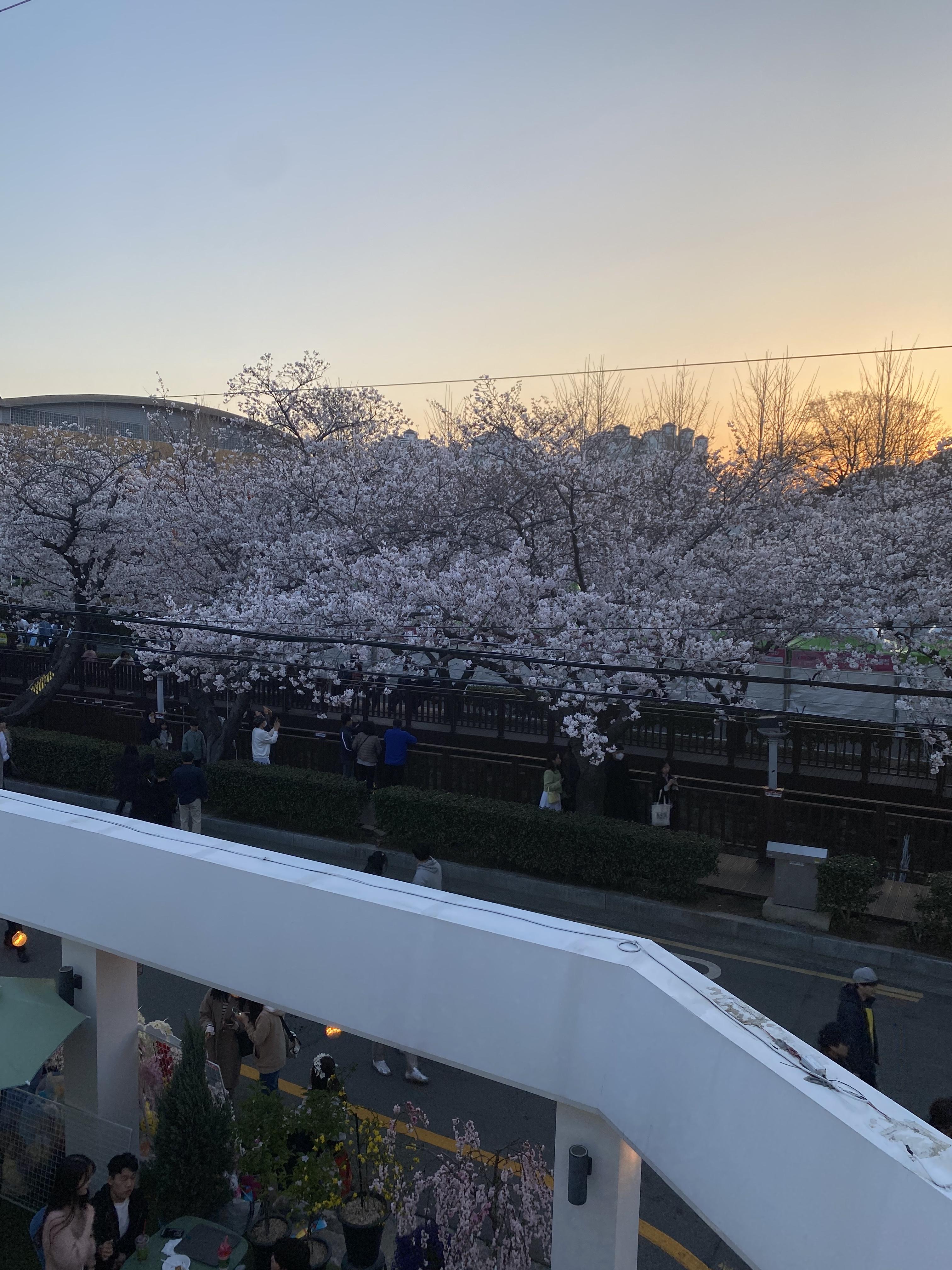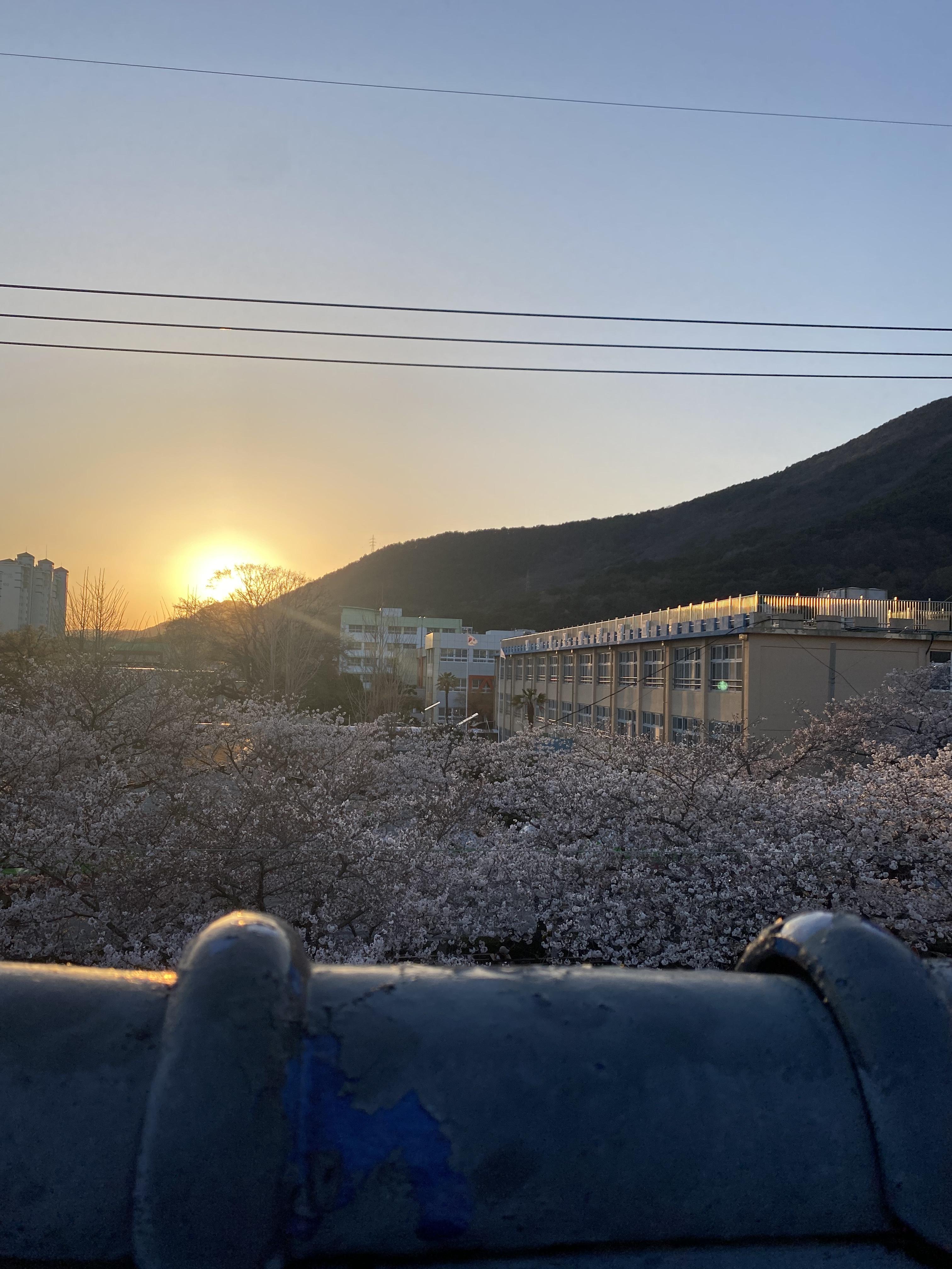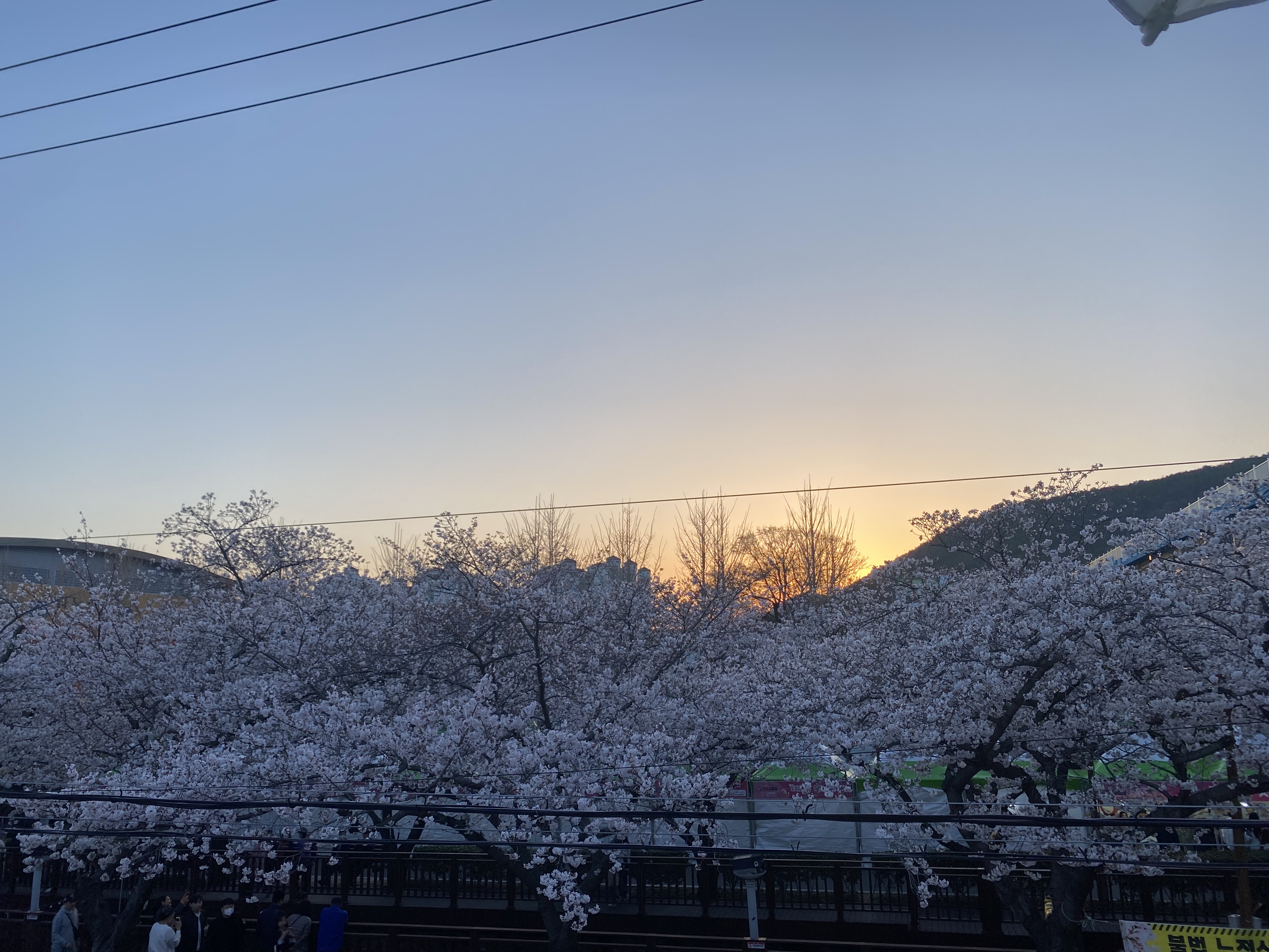 해가 질수록 하늘과 노을과 벚꽃이 어우러져 더 아름다웠다.