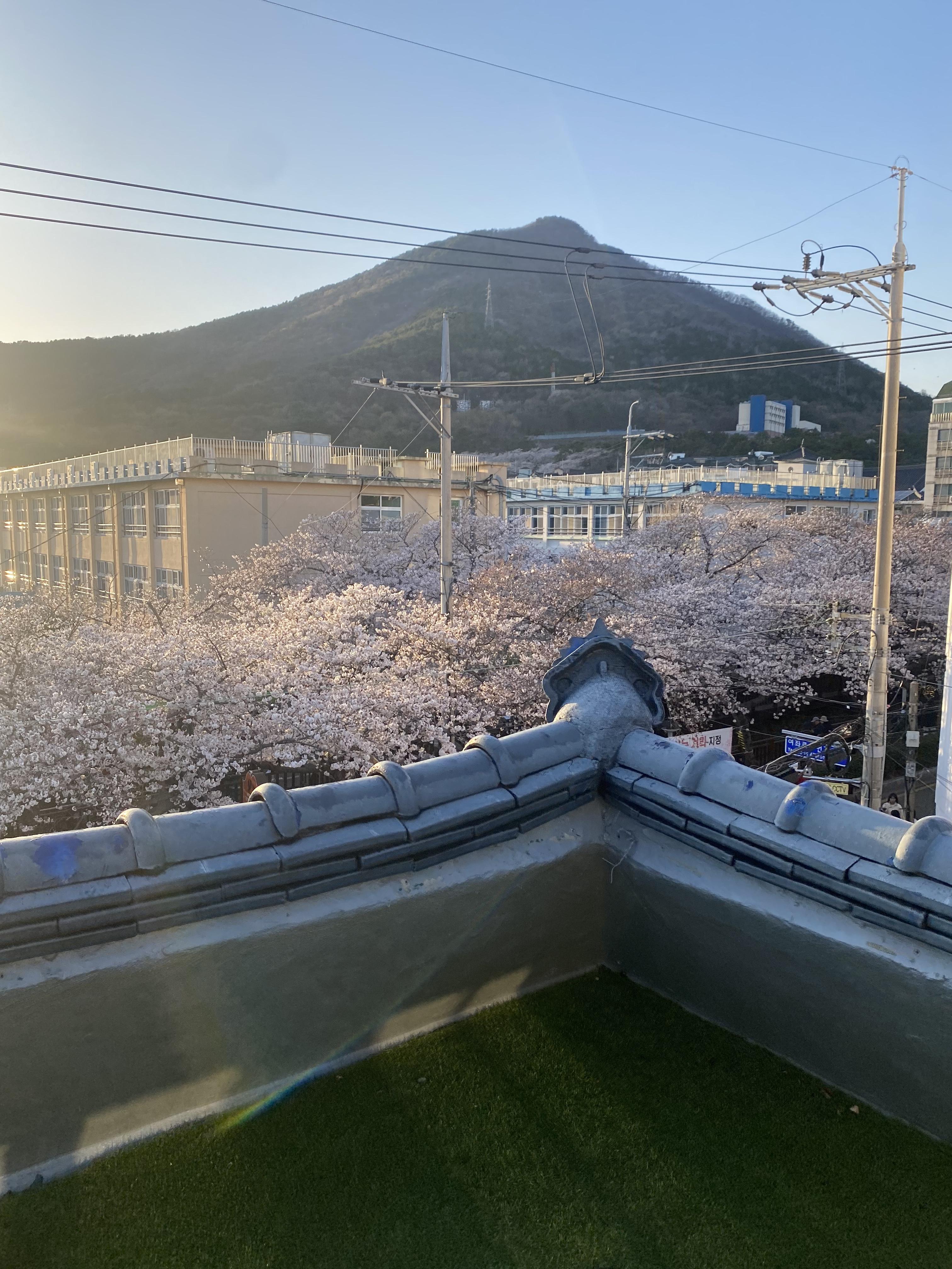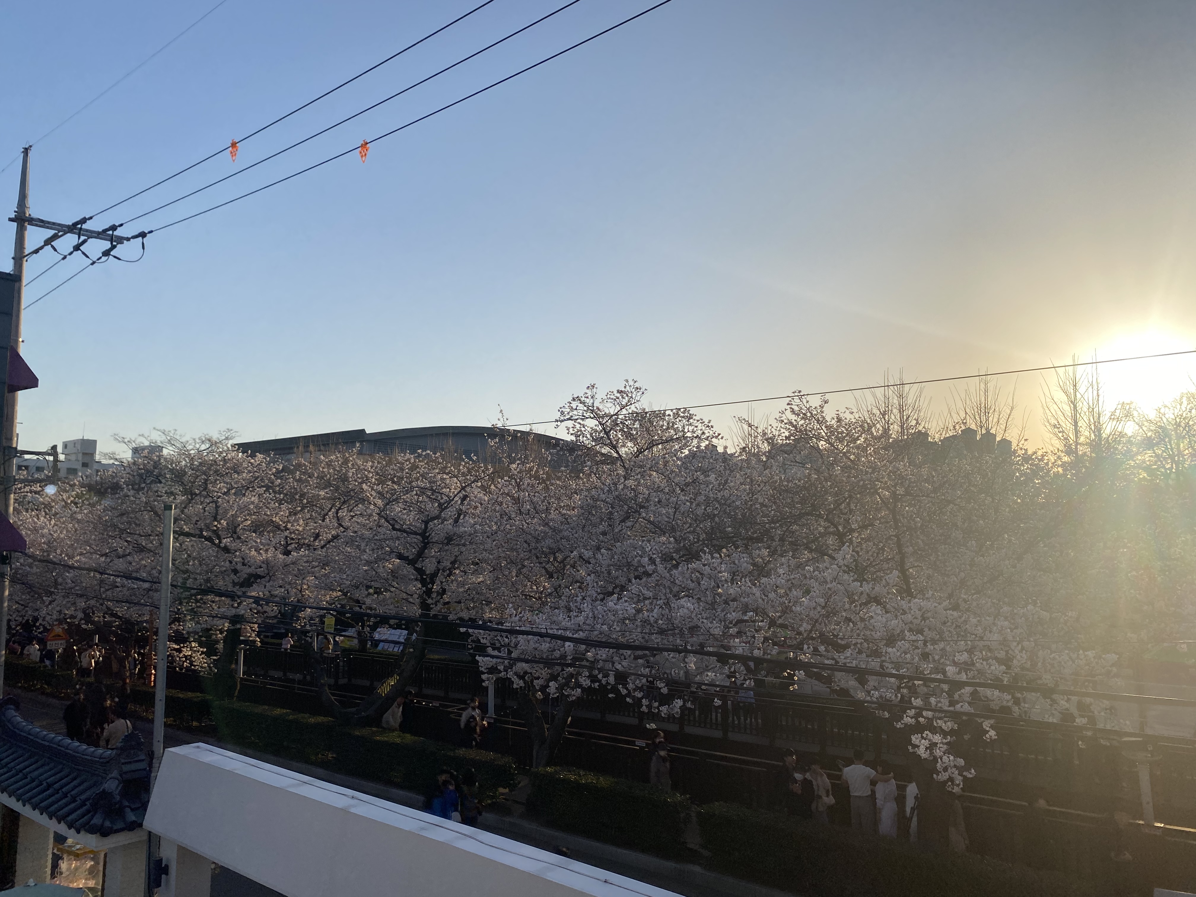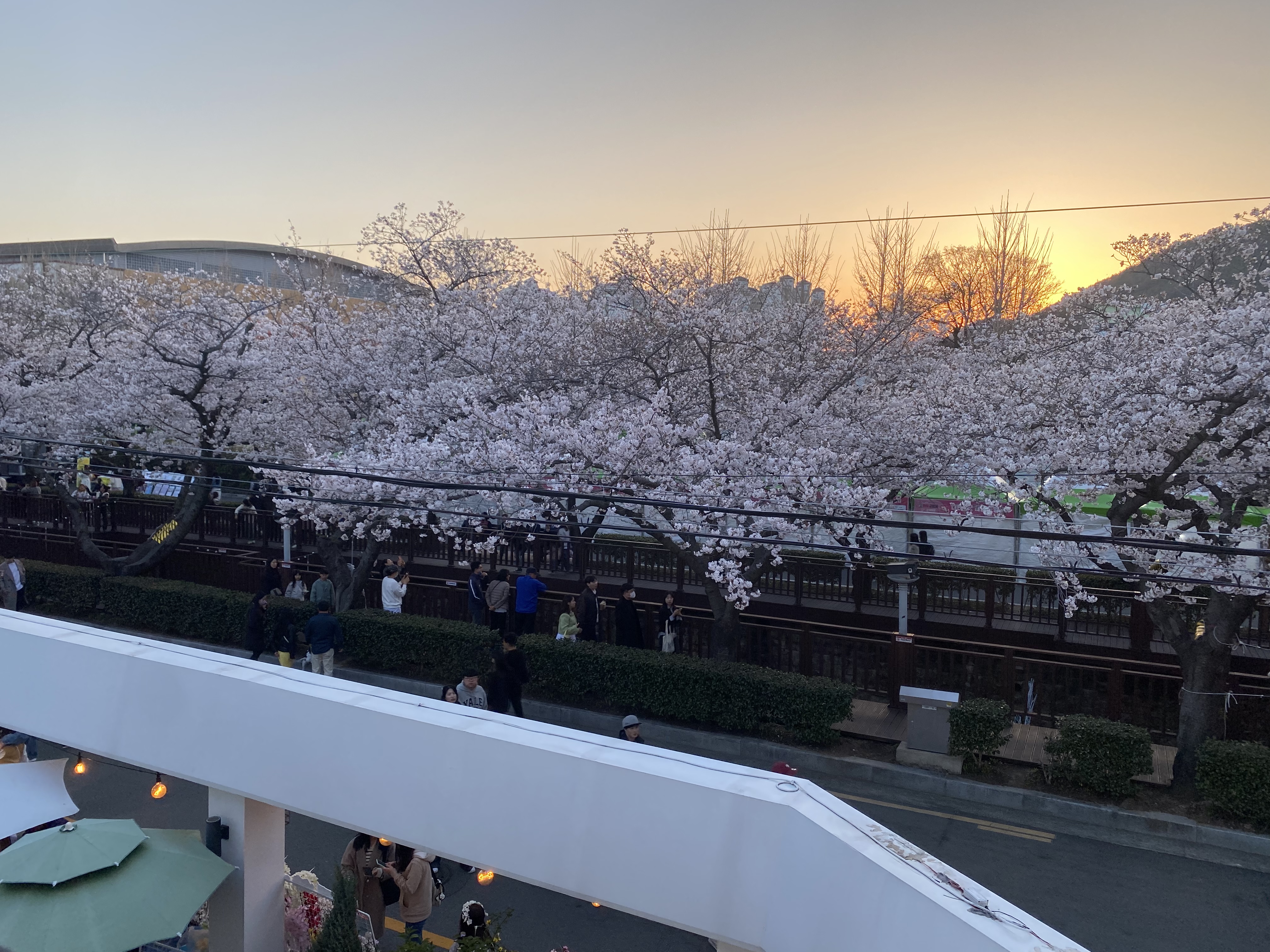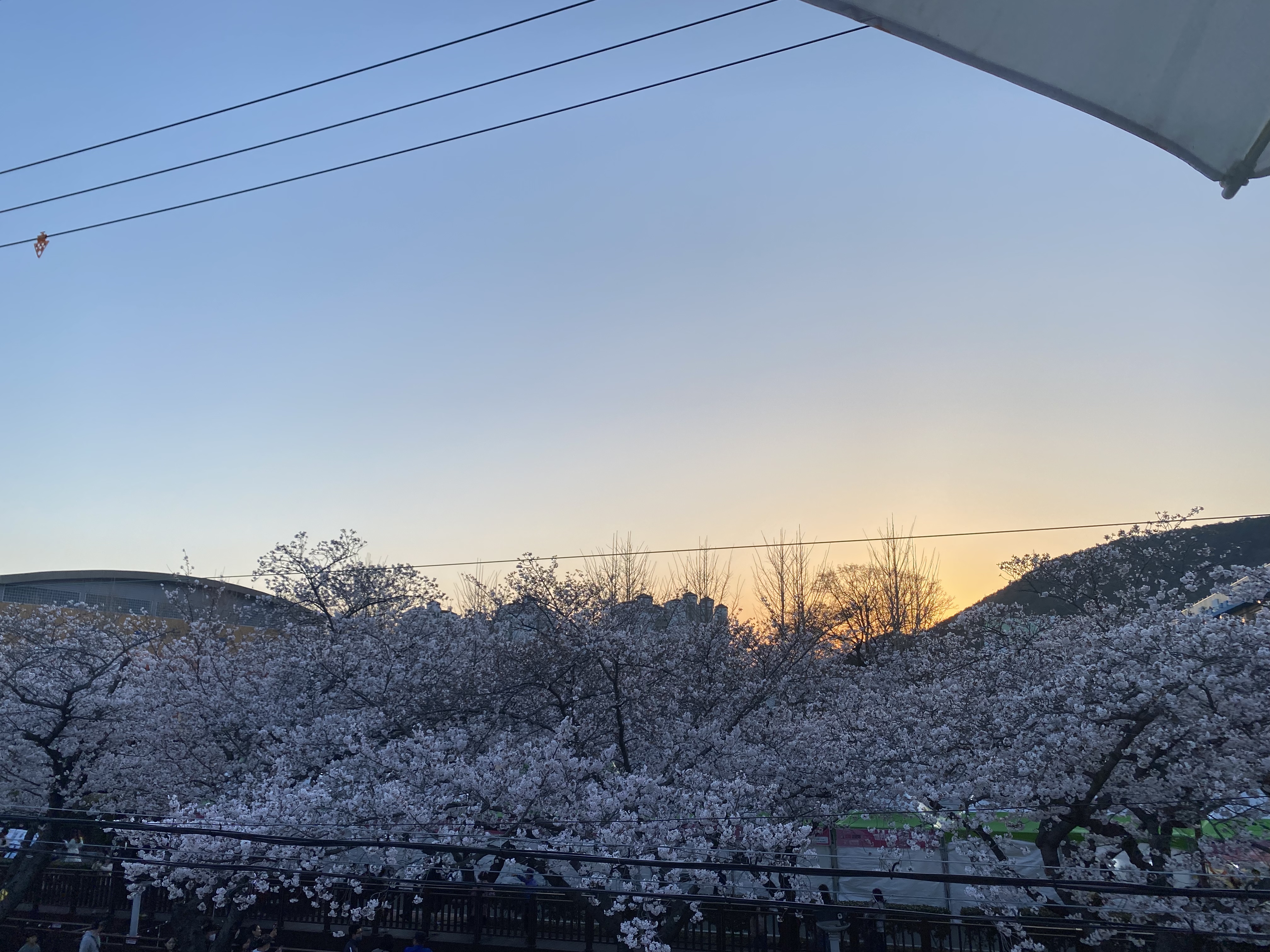 해가 질수록 하늘과 노을과 벚꽃이 어우러져 더 아름다웠다.